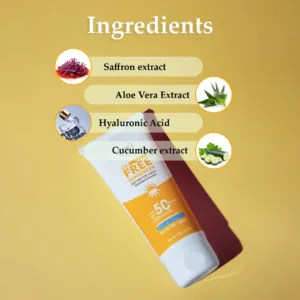 4. Hydrating and Nourishing: Enriched with hydrating hyaluronic acid and potent botanical extracts such as saffron, cucumber, and aloe vera, this sunscreen not only protects but also nourishes and revitalizes the skin, leaving it feeling moisturized and refreshed.